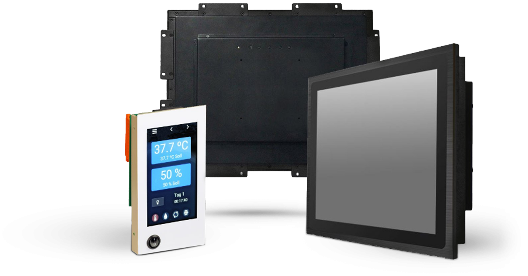 Our industrial displays cover a wide range of applications and visualize sensor and command data clearly and reliably. They are available in various sizes and designs, optionally with touch controllers and protection standards such as IP65. Thanks to their long service life and brightness levels of up to 1,000 nits, they remain perfectly legible even under harsh environmental conditions.